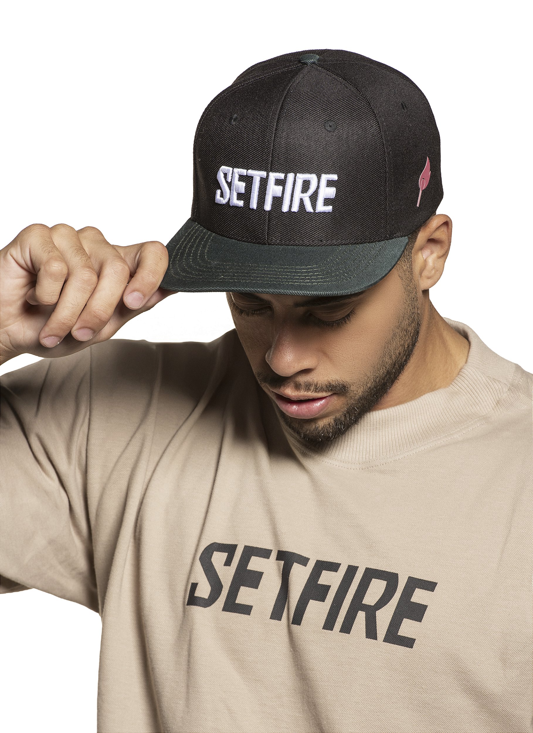 Boné aba reta preto e verde com design moderno e atitude marcante, ideal para quem valoriza estilo e personalidade no dia a dia. Confeccionado em tecido resistente, proporciona durabilidade aliada ao conforto, perfeito para uso urbano e casual. A aba verde destaca-se pelo contraste com o corpo preto, trazendo uma combinação única que acompanha tendências de moda streetwear. O bordado frontal "SET FIRE" reforça a identidade exclusiva, enquanto o detalhe lateral em formato de fósforo traz um toque de originalidade. Ajustável, garante encaixe perfeito para diferentes tamanhos, promovendo praticidade e segurança.